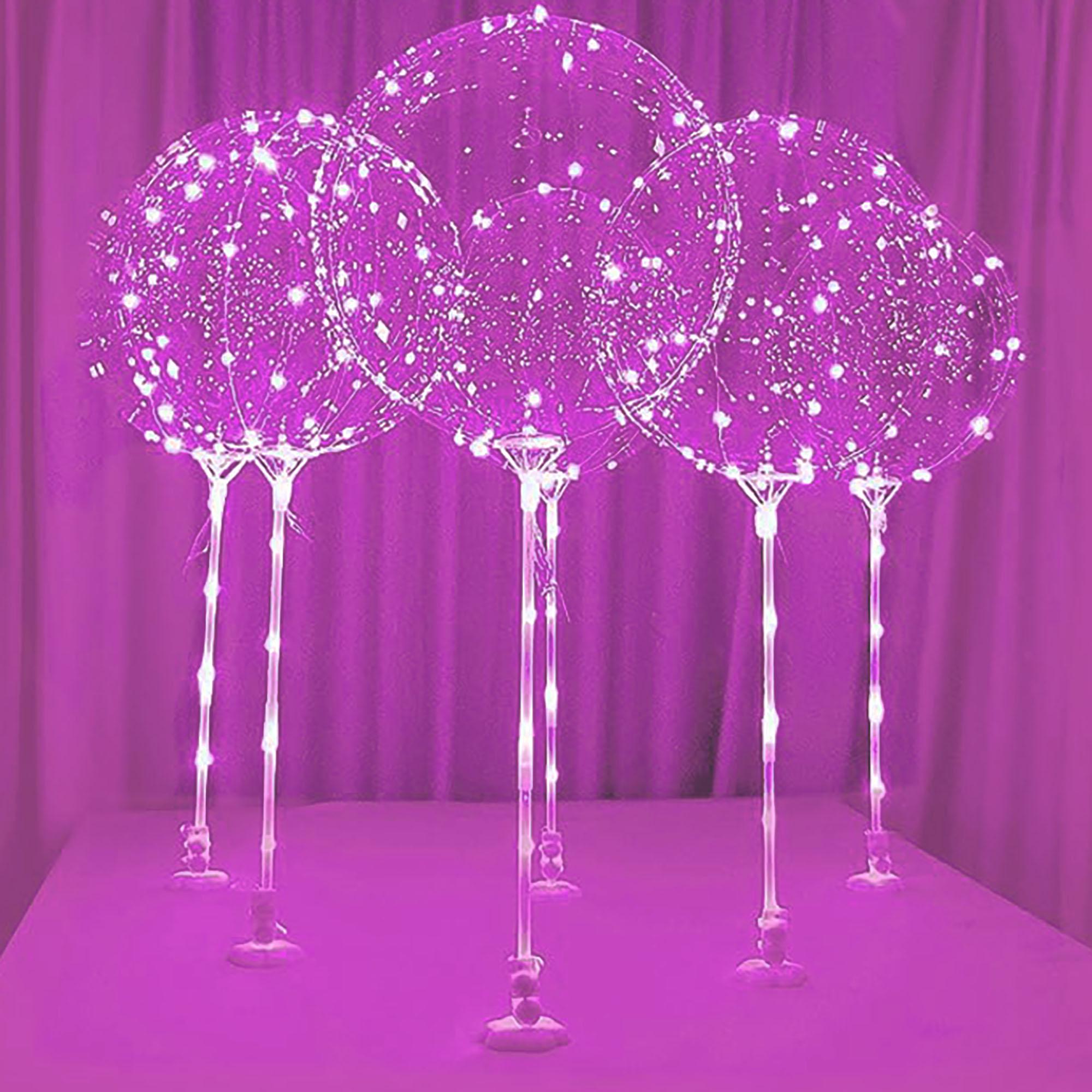All you need is a decent pump, preferably an air compressed pump and you're ready to go. The product was designed specifically for dining table décor and as a more cost effective, convenient alternative to helium balloons. The balloons are 12-18 inch and are quite secure when assembled and stuck. The length from the bottom to the top when assembled is about 32 inches. The LED strip lights are constant warm white color. This balloons will stick directly on a table however they won't work on a table cloth as the cloth has no resistance. If you intent to use a table cloth you will need to stick them to beer mats or small plates or some other fixed surface.