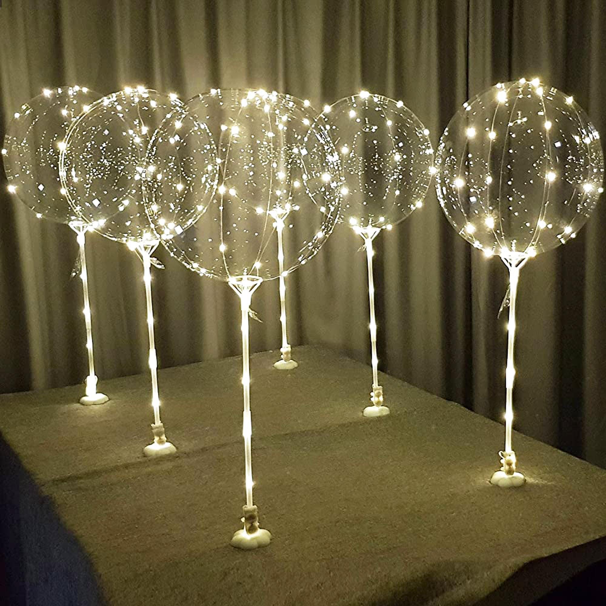 All balloons are clear, for warm white color LED lights chose variation Gold.
