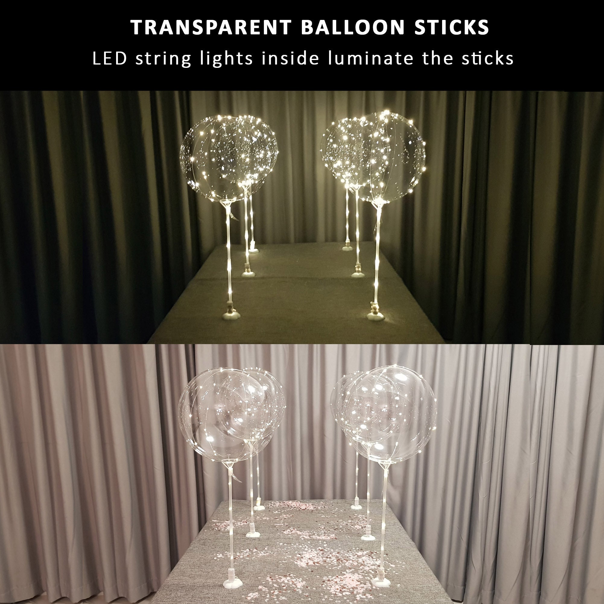 ✔ TRANSPARENT BALLOON STICKS SET-sticks and holder are clear special designed for use with LED Balloons and led string lights