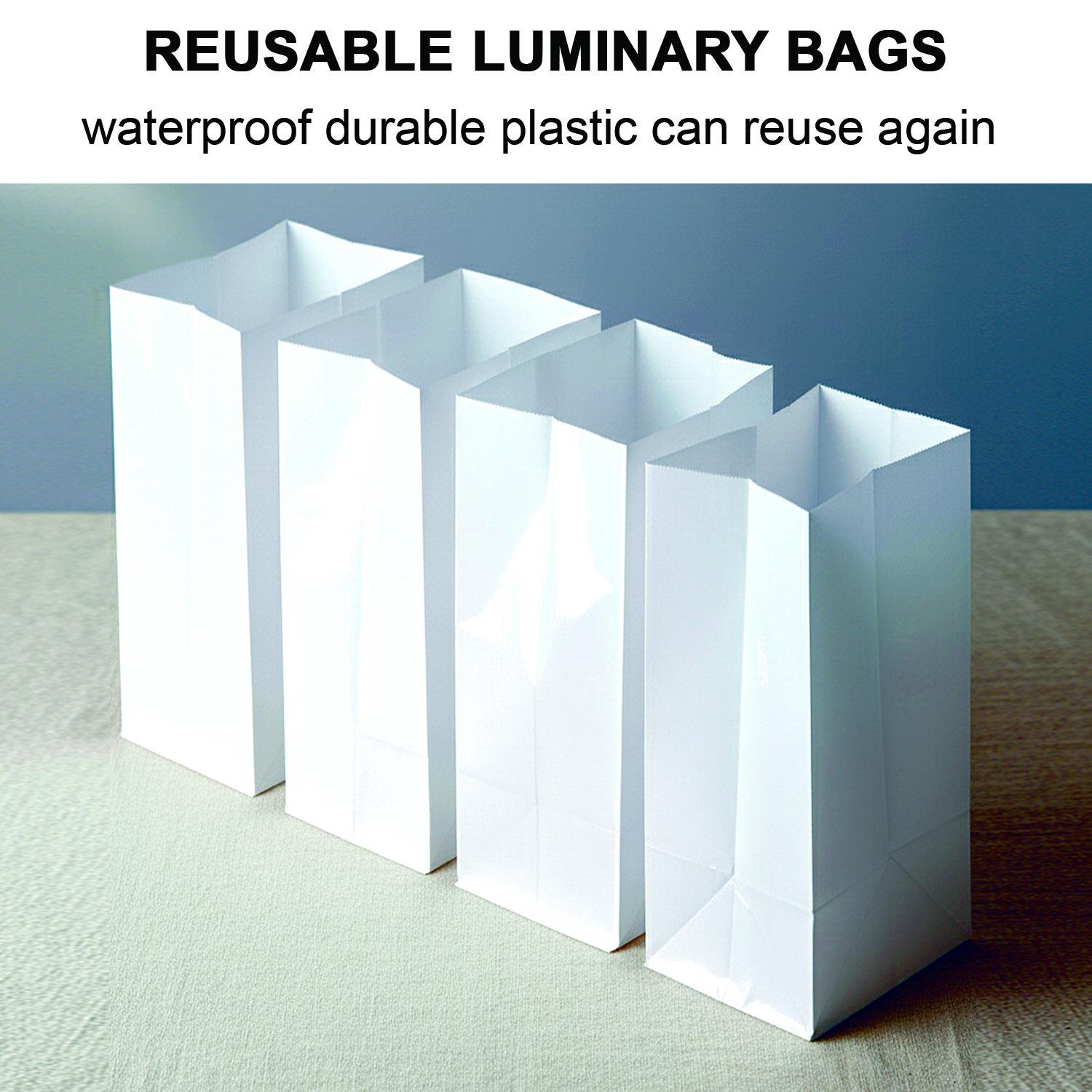 Premium & Safe Design: Constructed from durable, plastic, our luminary bags are safer and more robust than traditional paper options. They hold their shape better and are ideal for use with battery-operated luminary lights. (Do not use with real candles as bags will melt)