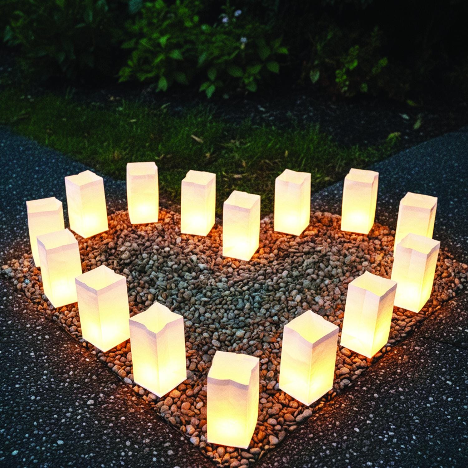 Simple Setup: Just add the lights(NOT INCLUDED)and some weight such as sand, or stoness to anchor the luminary bags in place. Instantly transform your walkway, patio, or yard with a warm, welcoming glow using these classic luminaries.