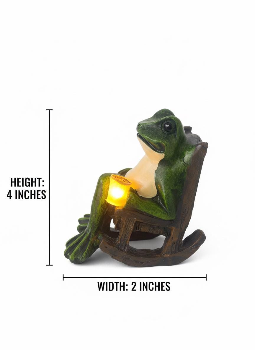 The garden statue is small, it is about the size of a real frog. The frog is about 4 inch high and 2 inches width ,4 inch long