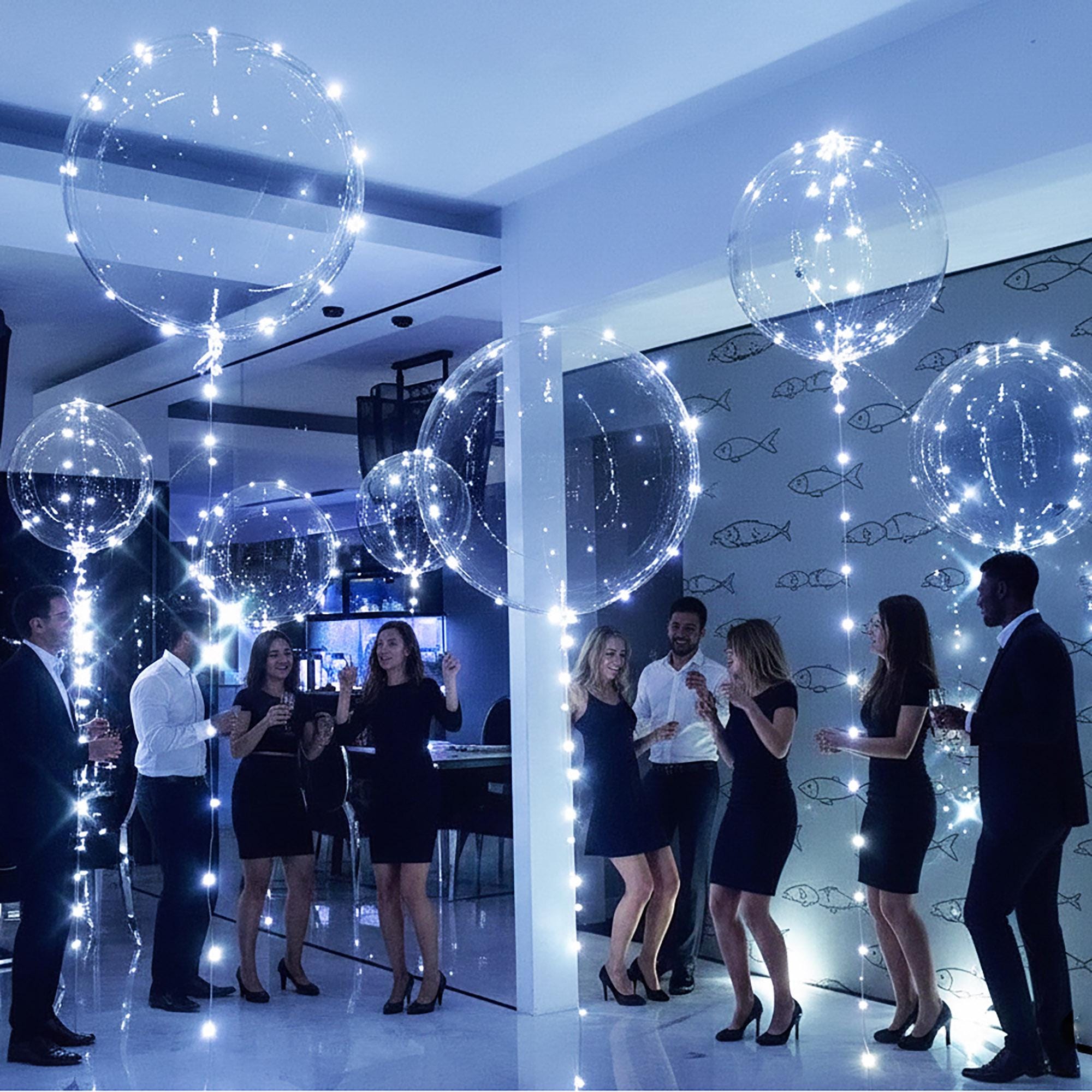 Bobo Balloons are crystal clear and create a magical effect when the lights sparkle.