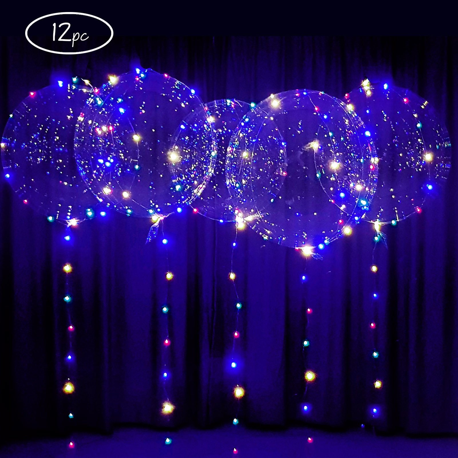 Big bobo balloons can inflate with helium or air. 12pc of 22 inch balloons with 10 foot long multi-color fairy light strings. Cell batteries included in each pack (no need to add extra batteries) Lights last for over 72 hours on constant full brightness. Fairy lights can be reused many time. two extra balloons for free for a practice assembly before your event. Popular choice for birthdays balloons, helium balloons, wedding balloons, , halloween party balloons.